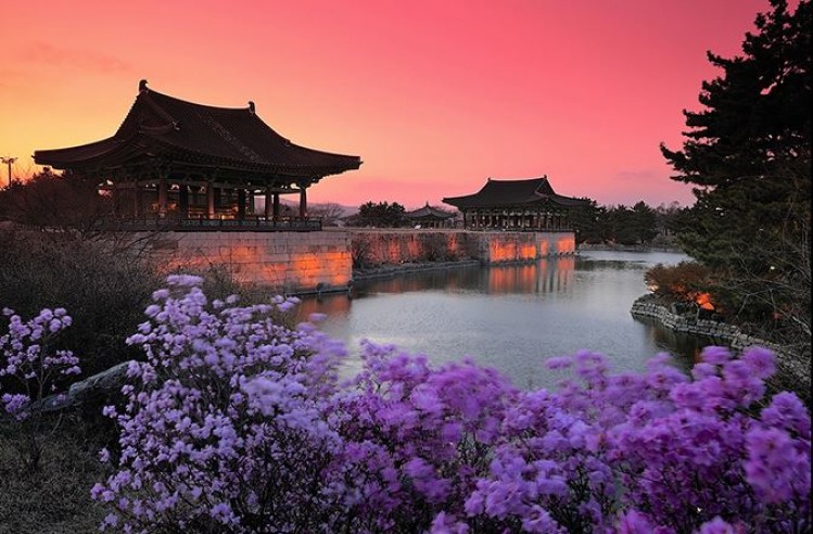 Hồ Anapji ( 안압지 ) ở Gyeongju, Gyeongsangbuk-do.